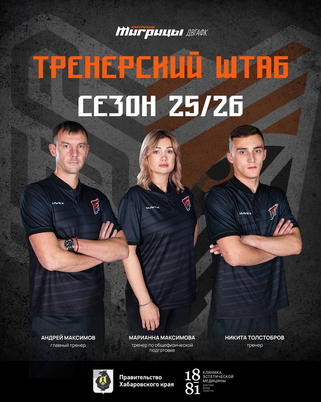 Мастер спорта РФ Андрей Юрьевич Максимов продолжит вести команду вперёд и руководить тренировочным процессом. Ему будут помогать тренеры: Никита Александрович Толстобров и тренер по общефизической подготовке, мастер спорта РФ Марианна Александровна Максимова.