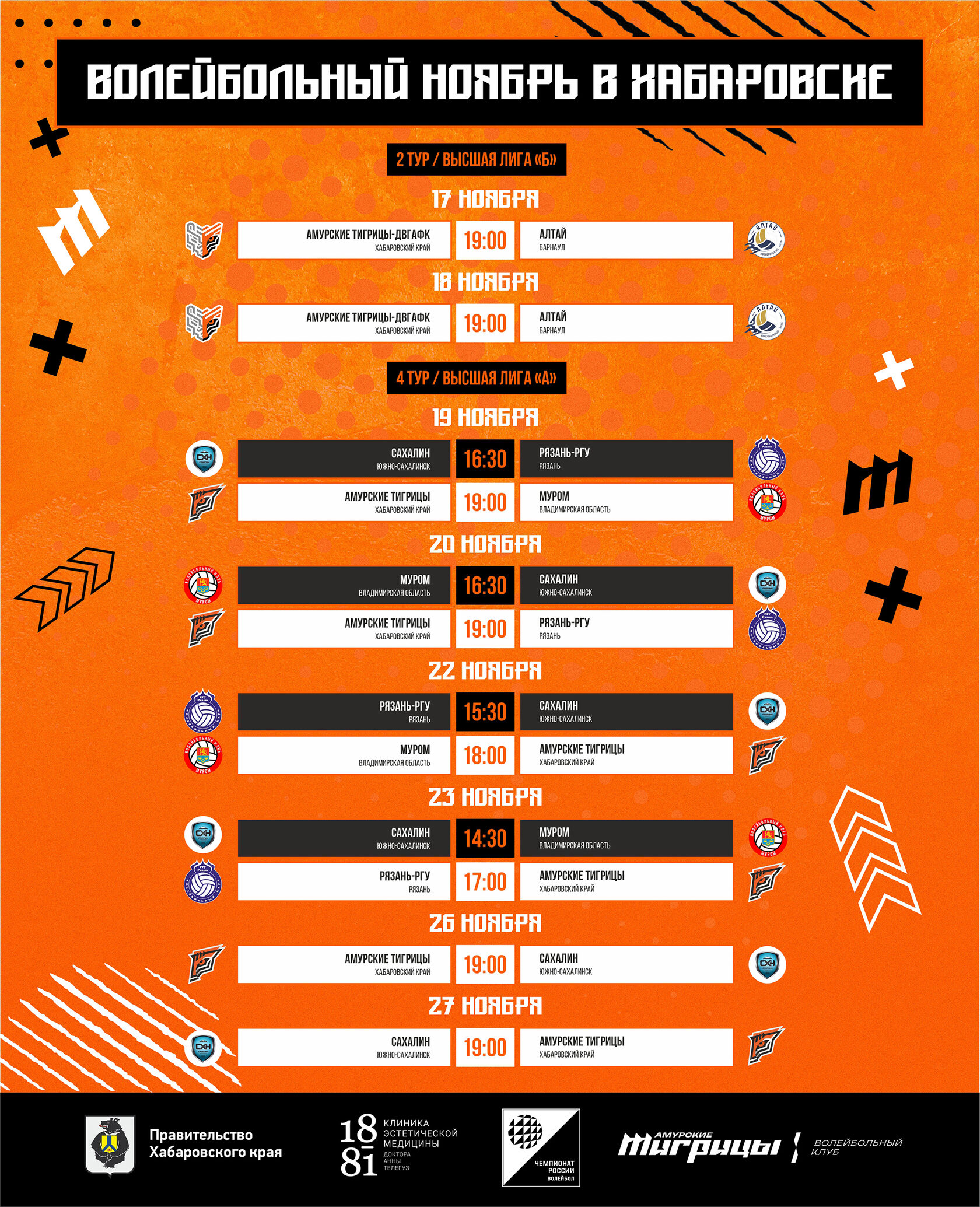Сразу на следующий день после молодёжной команды на площадку выйдут «Амурские Тигрицы». В четвёртом туре основная команда проведёт шесть матчей — по два с «Муромом», «Рязанью-РГУ» и «Сахалином».
