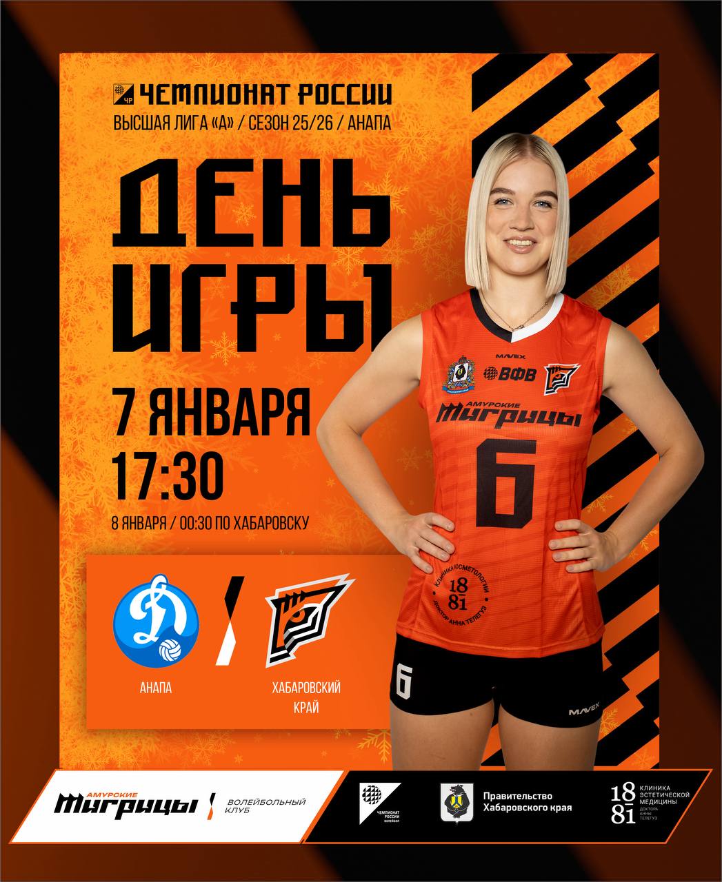 Первую игру в рамках 7 тура «Амурские Тигрицы» проведут с «Динамо-Анапа». Начало матча в 0:30 (8 января) по Хабаровску.